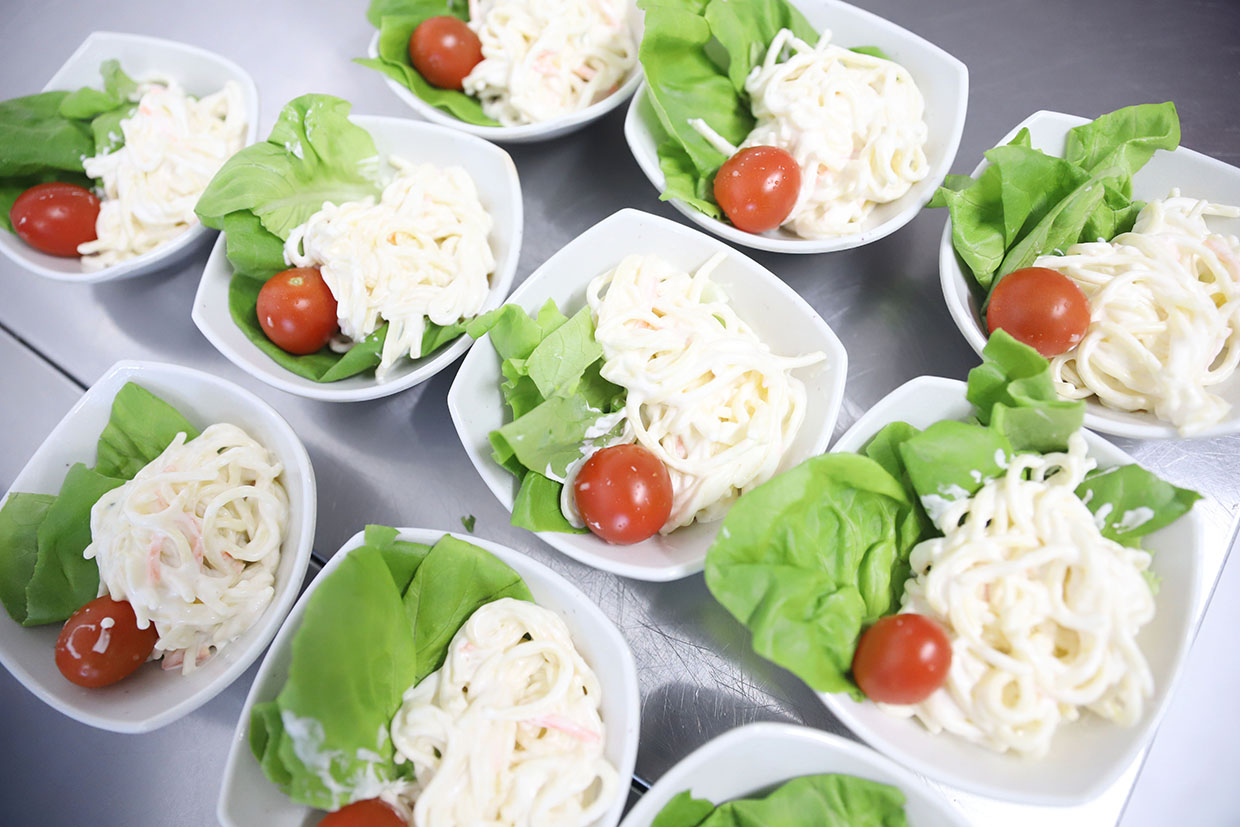 副菜は「スパゲティサラダ」です。 揚げ物との相性は抜群です。